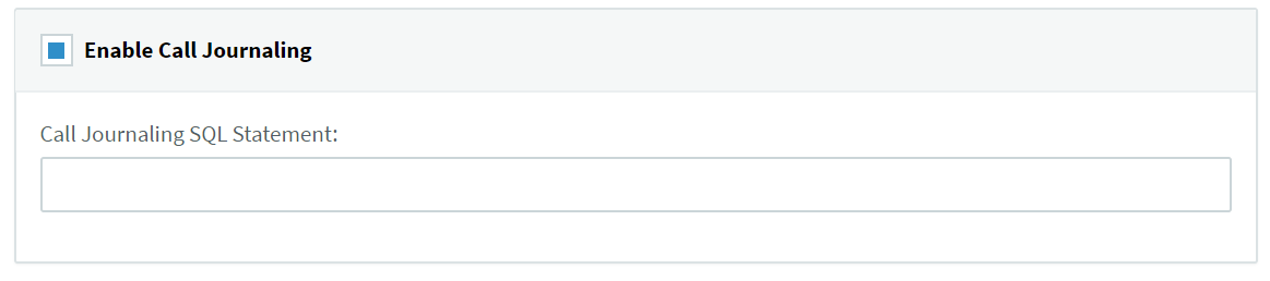 1. If you want to report external calls to the database, check the Enable Call Journaling checkbox and configure the Call Journaling SQL Statement.