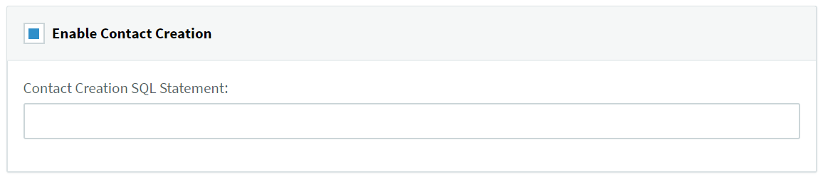 1. The Contact Creation SQL Statement must return the following case-sensitive columns for the contact created: contactid, firstname, lastname, companyname, email, phonemobile, phonemobile2, phonehome, phonehome2, phonebusiness, phonebusiness2, phoneother, faxbusiness, faxhome, pager, photourl. You can change the name of the columns returned using the same technique explained above for the Lookup SQL Statement.